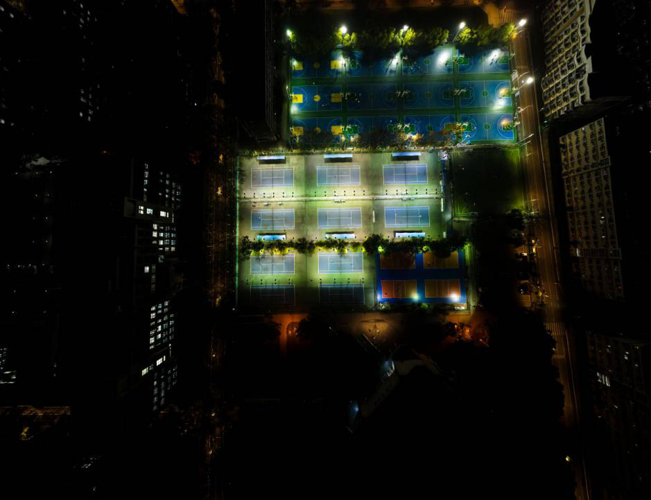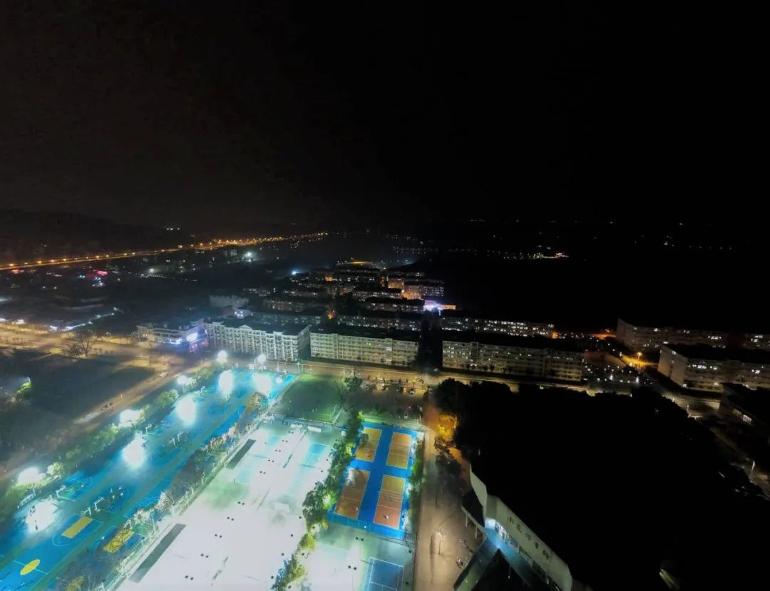 夜幕下的运动场,灯盏高悬