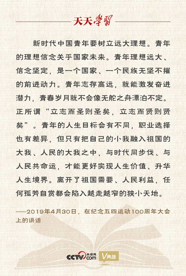 2017年在中国政法大学考察时,习近平总书记寄语广大青年学子:“立志是一切开始的前提,青年要立志做大事,不要立志做大官。”2019年在纪念五四运动100周年大会上,总书记对新时代中国青年提出6点要求,其首要要求即树立远大理想,指出“青年的理想信念关乎国家未来……青年志存高远,就能激发奋进潜力,青春岁月就不会像无舵之舟漂泊不定”,为青年一代健康成长指明了正确道路。