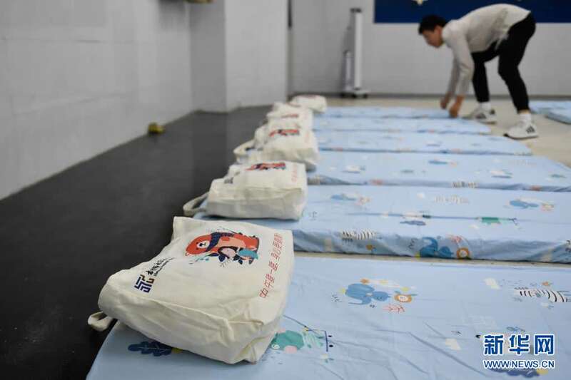 5月8日,杭州市永正实验学校的老师在午睡室内整理床铺。新华社记者 黄宗治 摄