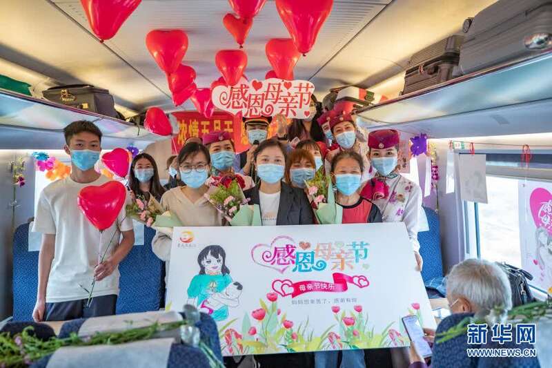 在母亲节来临之际,中国铁路成都局集团有限公司重庆客运段组织青年职工在万州北至重庆北的C6407次列车上,开展“浓情五月天,感恩母亲节”主题活动。活动中,青年职工们通过邀请旅客现场送鲜花、写祝福卡片、视频送祝福等方式向广大母亲送上节日的祝福。