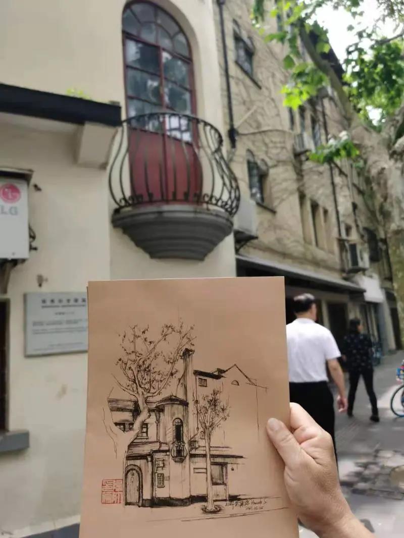 从现场情况看,网红阳台下方墙面上就有二维码,扫描进入后可以了解关于该建筑物的信息,但现场游客真正注意到二维码的不多,举起手机对着阳台拍照仍是习惯性动作。一名绘画爱好者还将他画的阳台作品拿到了现场,供人拿着拍照。