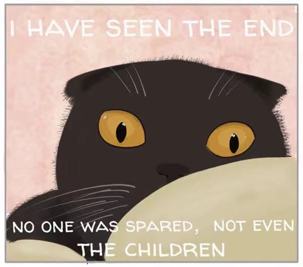 大笑猫表情包之“ 我看过大结局了。没人能活下来,甚至是小孩”