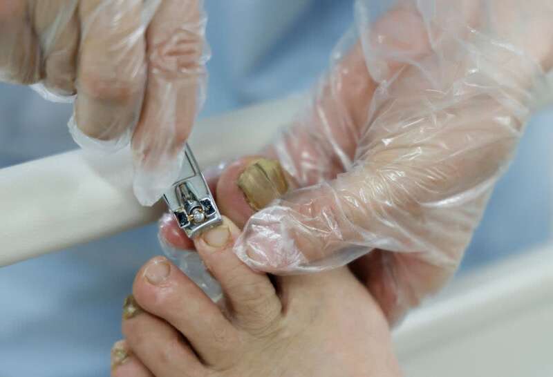 5月10日,邹星在贵州省正安县人民医院重症医学科给病人修剪脚指甲。