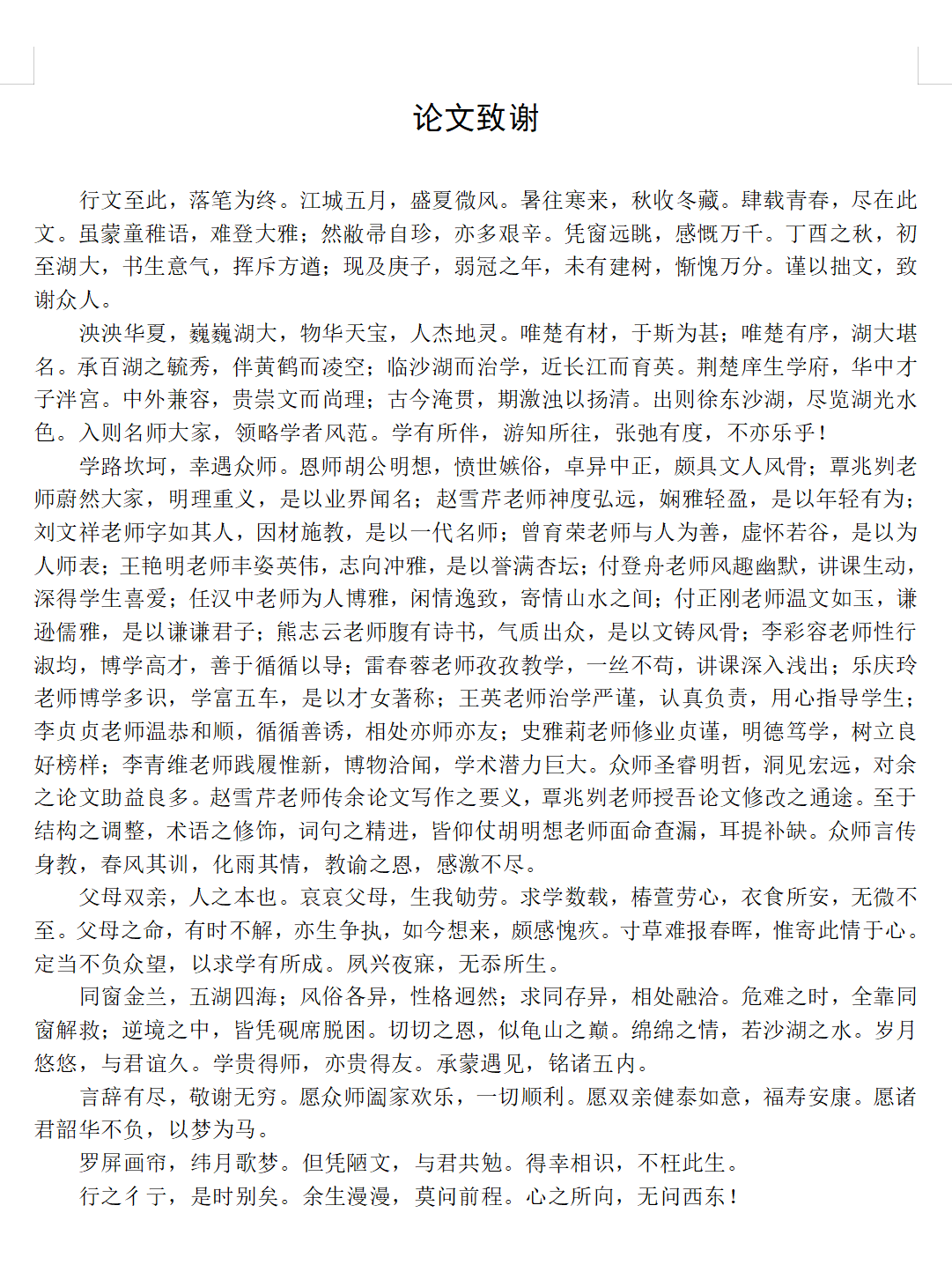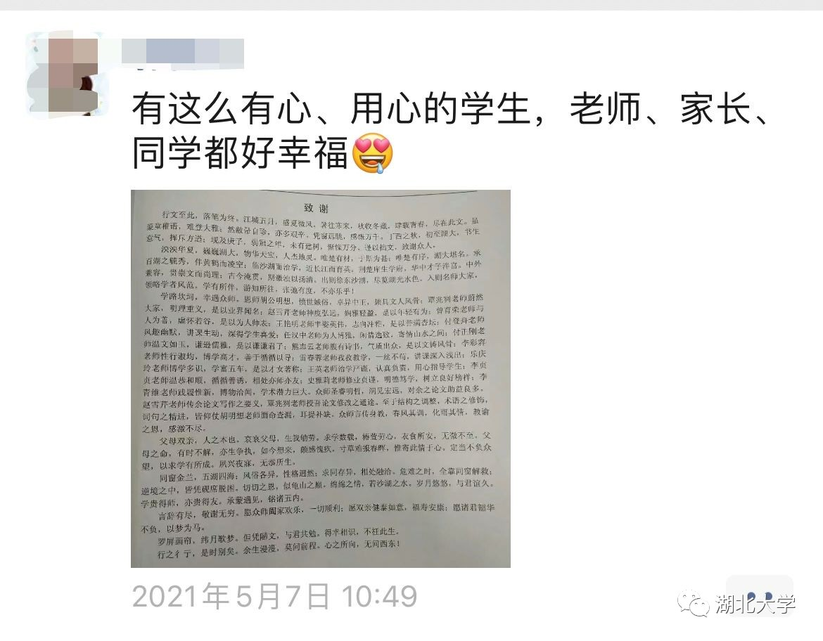 “众师言传身教,春风其训,化雨其情,教谕之恩,感激不尽。”