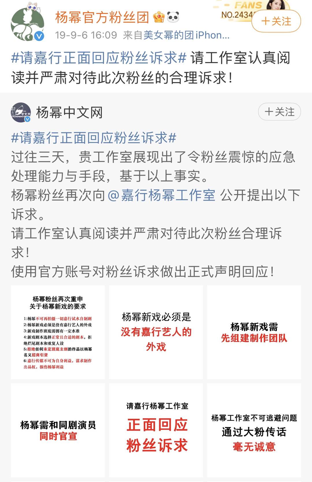 杨幂粉丝请经纪公司正面回应粉丝诉求