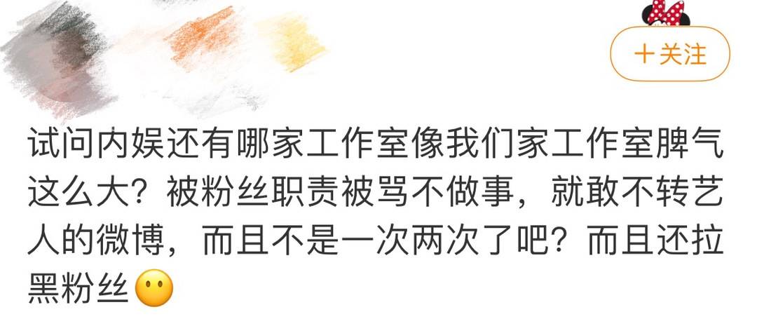 随着演艺经济的发展,越来越多的艺人拥有了自己的工作室。这意味着,他们对自己的工作有了更多的自主权和选择权,可以相对独立地进行演艺活动。脱离经纪公司、成立为自己量身打造的团队,无论对哪个领域的艺人,都是有益无害的。但当一整个团队只打造一名艺人的时候,粉丝对于艺人发展中的各种不满,便也有了“追责对象”。