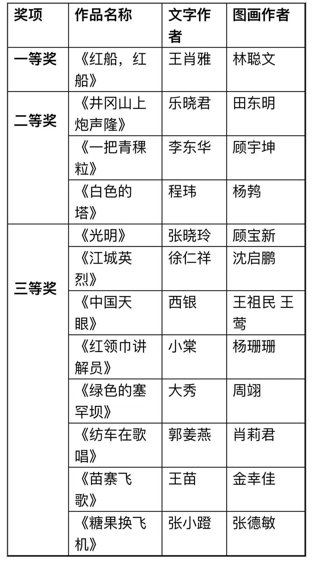 “绘本创作奖”获奖名单