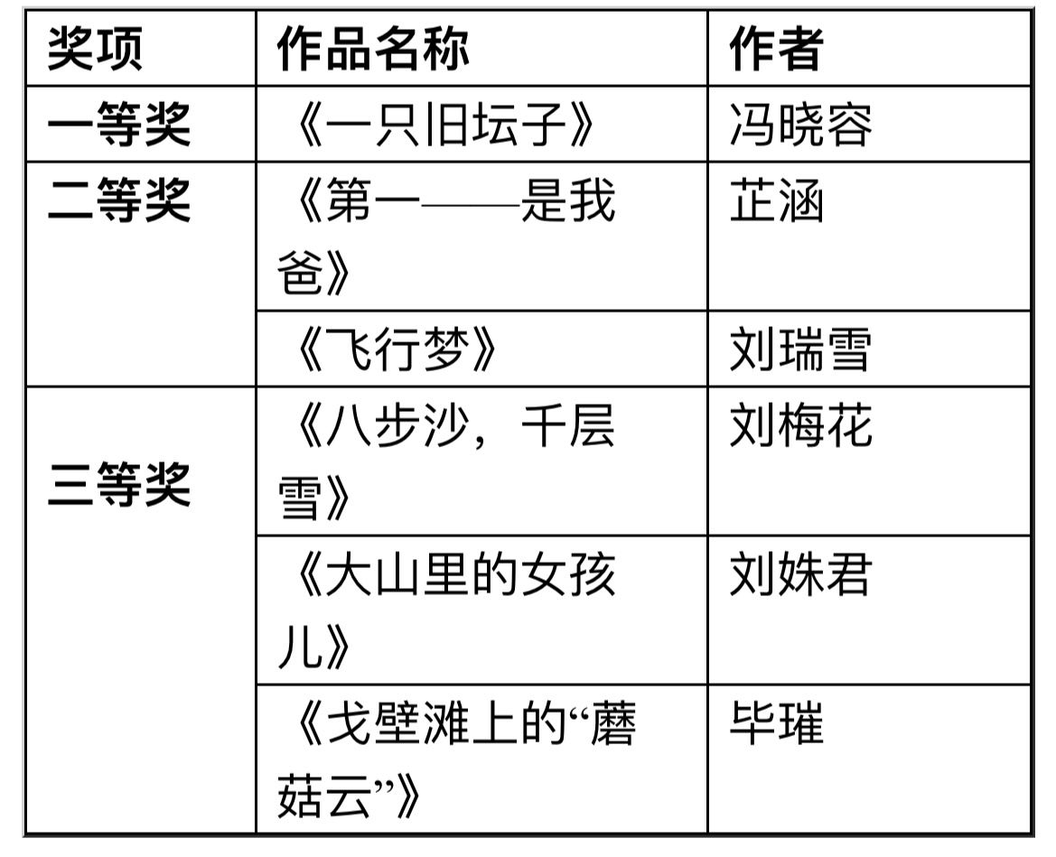 “文字创作奖”获奖名单
