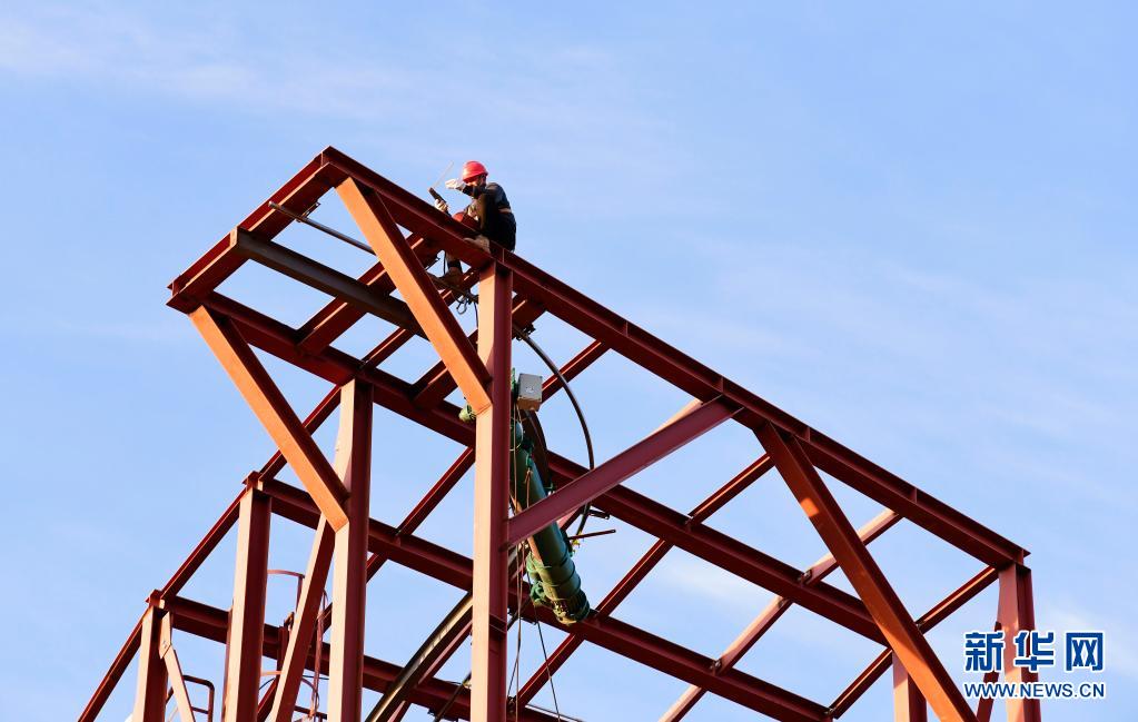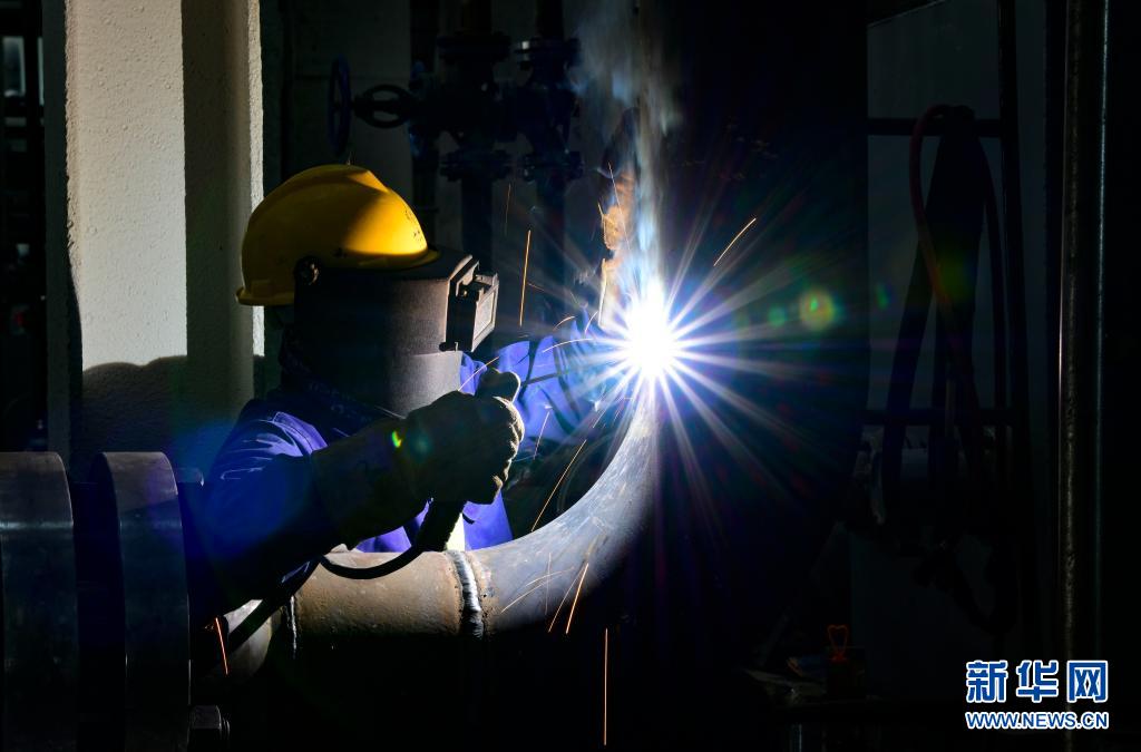 5月17日,建设者在内蒙古雅海能源开发有限公司60万吨液化天然气项目工地进行焊接作业。