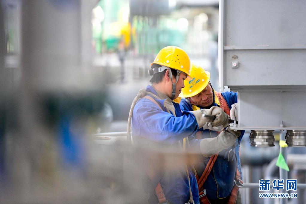 5月17日,建设者在内蒙古雅海能源开发有限公司60万吨液化天然气项目工地进行设备调试。