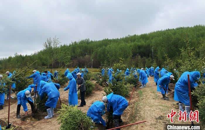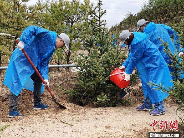 5月15日,民众在2021年六五环境日国家主场活动碳中和纪念林里植树。 中新社记者 孙睿 摄