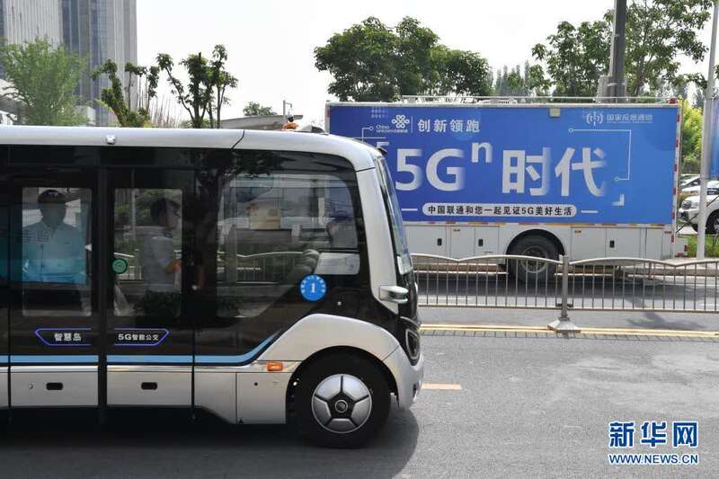 基于5G网络传输条件下的自动驾驶巴士在郑州市中道东路上行驶(2019年5月17日摄)。新华社记者 李嘉南 摄