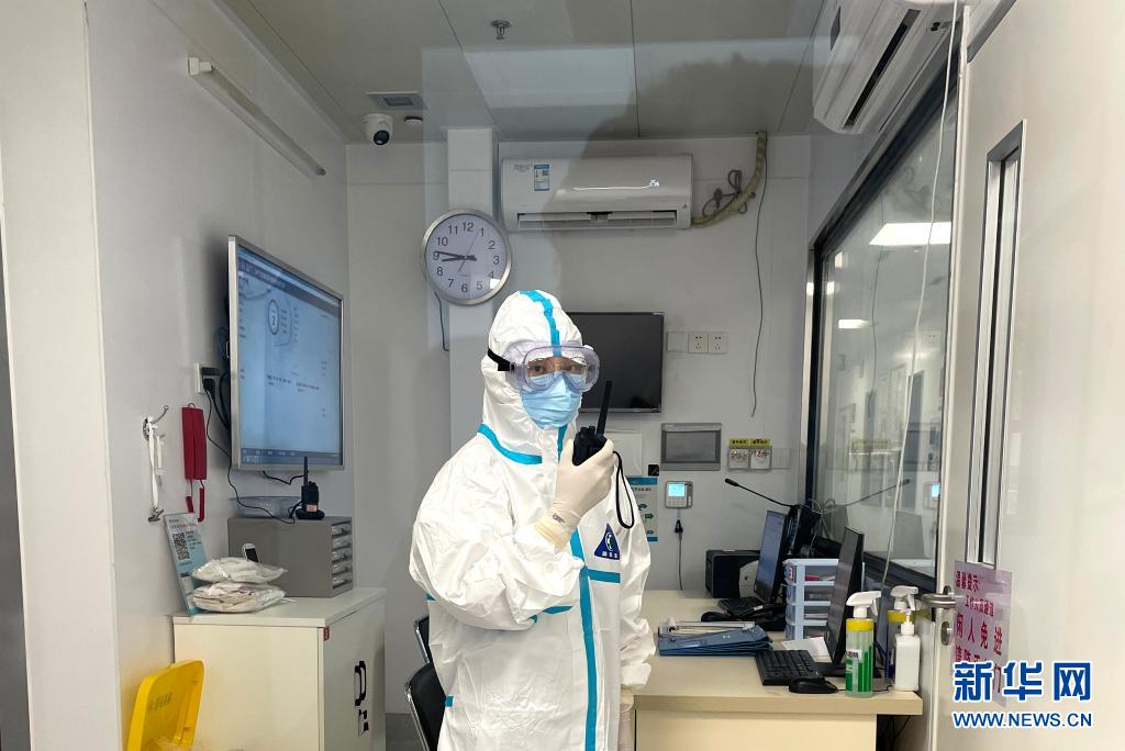 5月20日,罗新兰在感染病区工作。今年31岁的罗新兰是合肥市第一人民医院滨湖院区的一名护士。近日,罗新兰所在医院的感染病区收治了2名新冠肺炎确诊患者。目前,罗新兰和同事们已经在病区连续坚守一周,承担起患者的救治和护理工作。