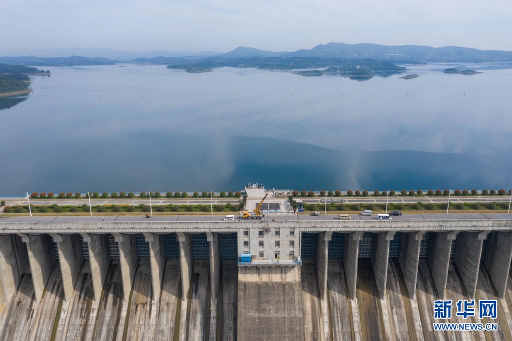 这是5月20日拍摄的湖北省丹江口市丹江口水库景色。当天丹江口水库坝前水位为160.98米,超过夏季防洪限制水位,意味着南水北调中线水源地目前有充足的水量可被调往北方(无人机照片)。新华社记者 才扬 摄