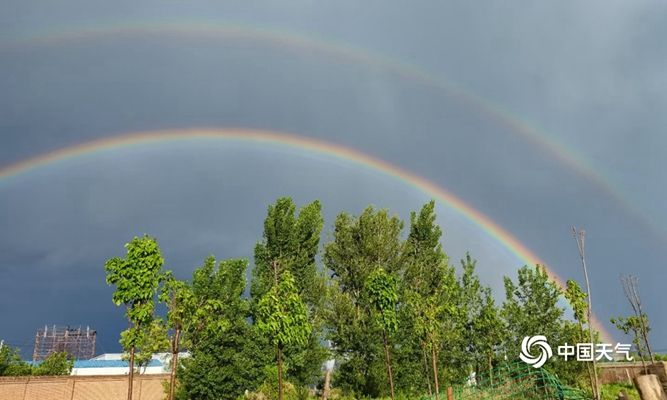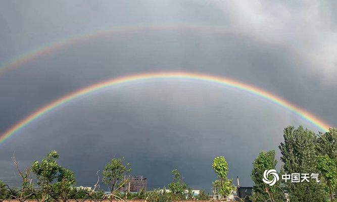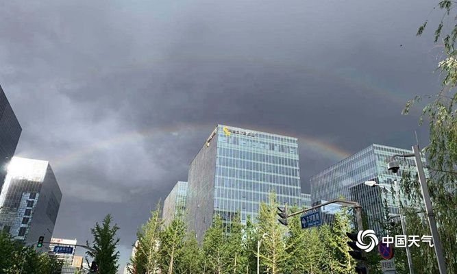 5月26日傍晚,雷雨尚未完全退去,北京天空已迫不及待亮出绚丽双彩虹。