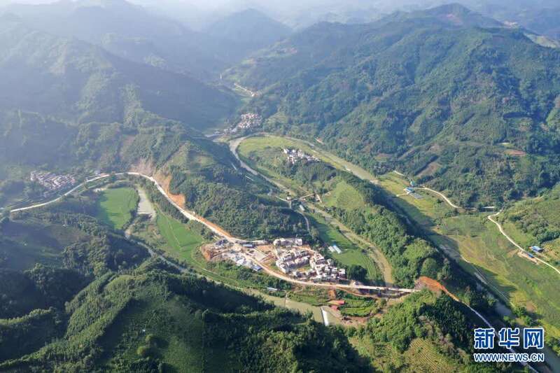 这是广西资源县“资水丹霞”田园综合体内的田园景观(4月29日摄,无人机照片)。