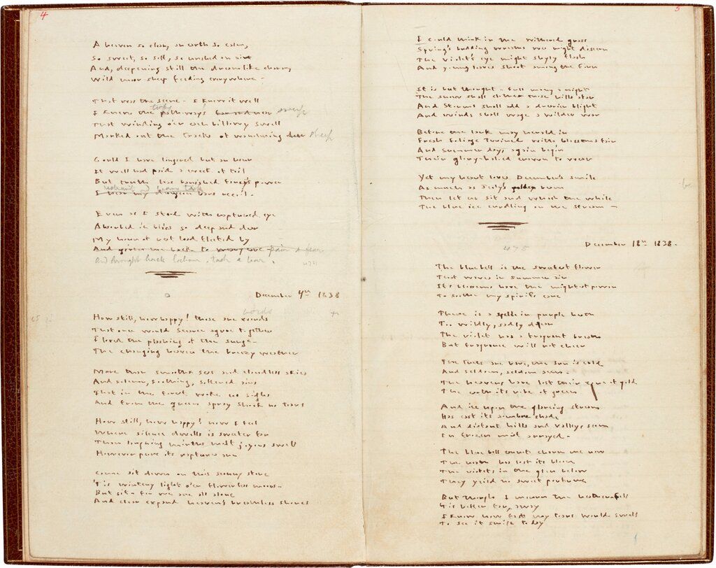 2011年,夏洛蒂·勃朗特(Charlotte Brontë)14岁时创作的一本迷你书引发了一场出价超过100万美元的竞购战。2016年,勃朗特牧师博物馆(Brontë Parsonage Museum)宣布,它找到了一本充满了勃朗特姐妹孩童时期的涂鸦和题词的书(包括夏洛蒂的一首不知名的诗),这本书曾在一次海难中幸存下来。
