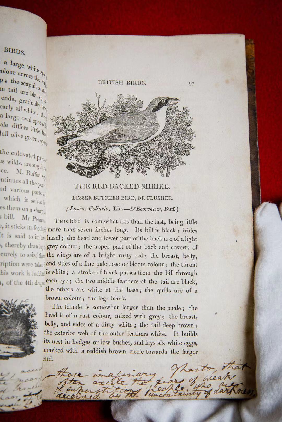 这些藏品还包括勃朗特家的家族信件、刻有铭文的初版书籍,以及其他一些遗迹,例如布满了勃朗特一家所书写的注释的托马斯·比尤伊克(Thomas Bewick)所著的《英国鸟类史》(History of British Birds),它在《简·爱》的开篇场景中出现过,让我们得以一窥勃朗特一家的生活,