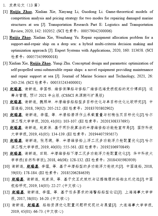 赵瑞嘉做事踏实务实,在学术道路上一步一个脚印成长。从第一篇中文核心开始,他便贯彻了导师严谨认真的要求,仔细斟酌下笔的每一句话,认真理顺上下文的逻辑关系,做到每一个公式都有据可依。在文章被中文核心期刊录用之后,他继续钻研EI等更高水平论文写作。