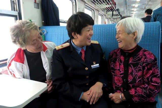 每天不同的人登上这趟列车,像是老友聚会,也像新友邂逅。车厢里的旅客络绎不绝,乘务员的脸上始终笑呵呵。“海之情”的热情服务换来旅客“闺女”“小兄弟”“大妹妹”的称呼。
