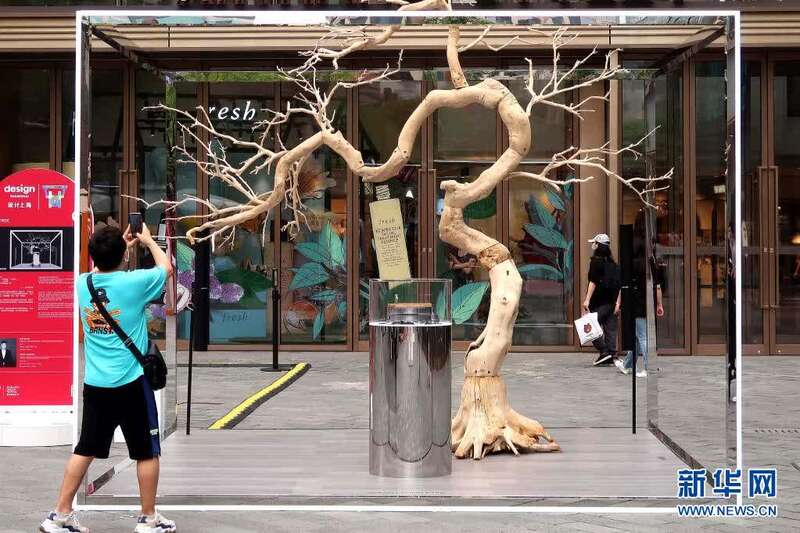 5月28日,游客在上海新天地拍摄“一棵树”艺术装置。