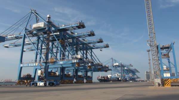 走进青岛港全自动化集装箱码头,整个码头见不到一名工人的身影,只有一台台蓝色装备在静悄悄地运行,行云流水般地装卸着来自世界各地的集装箱。