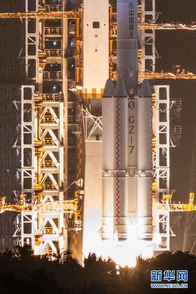 5月29日晚,我国在海南文昌航天发射场准时点火发射天舟二号货运飞船。这是空间站货物运输系统的第一次应用性飞行。