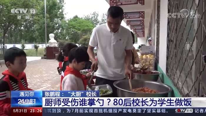 那么,这次“校长当大厨掌勺做饭”又是怎么一回事儿呢?原来,张鹏程所在的二郎庙小学,学校的厨师前段时间不慎扭伤了腰,没法站着做饭了。但临时又找不到厨师代替,张鹏程二话不说就系上了围裙、拿起锅铲给学生们做饭烧菜。什么油焖大虾、花菜炒肉、烧茄子等等孩子们都爱吃,您别说,这校长大厨的手艺还真不赖!一起来认识一下这位“上得厅堂下得厨房”的校长,张鹏程。