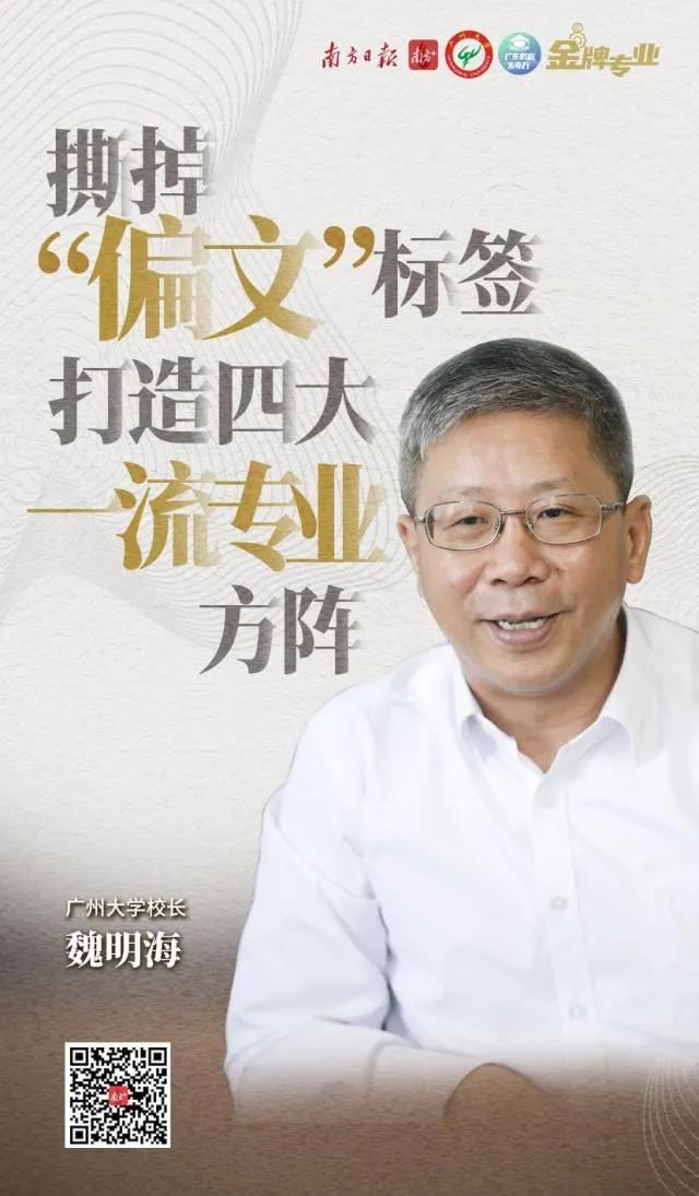 魏明海:在这一批一流专业建设点中,广州大学看准国家和地方产业需求,重点培育了四大一流专业方阵,是广州大学专业中的“王牌军”。
