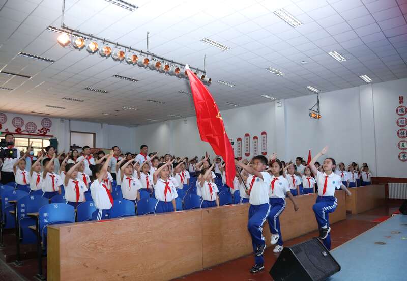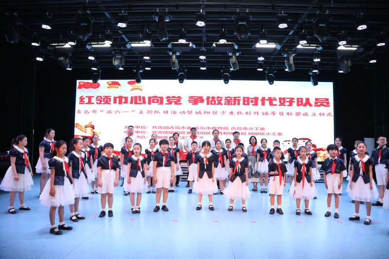 中国青年报客户端讯(中青报·中青网记者 邢婷)6月1日上午,“红领巾心向党 争做新时代好队员”青岛市“庆六一”主题队日活动暨城阳区少先队校外辅导员联盟成立仪式在青岛城阳区第二实验小学举行。该活动由共青团青岛市委、青岛市少工委主办,共青团城阳区委、城阳区教育体育局、城阳区少工委承办。团青岛市委副书记、市少工委主任赵全超、城阳区委副书记袁瑞先以及相关单位负责同志,少先队校外辅导员、少先队员、中队辅导员代表近三百余人参加活动。