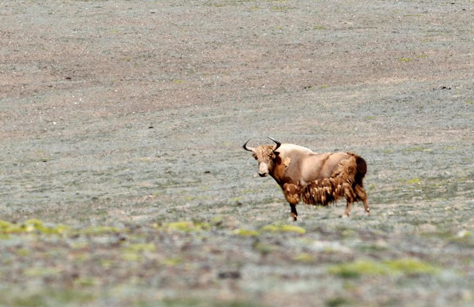 ↑西藏羌塘国家级自然保护区内的一只金丝野牦牛(2018年8月4日摄)。新华社记者 张汝锋 摄