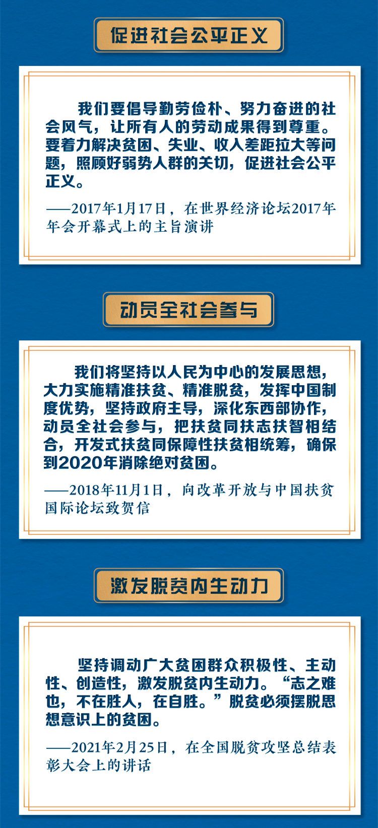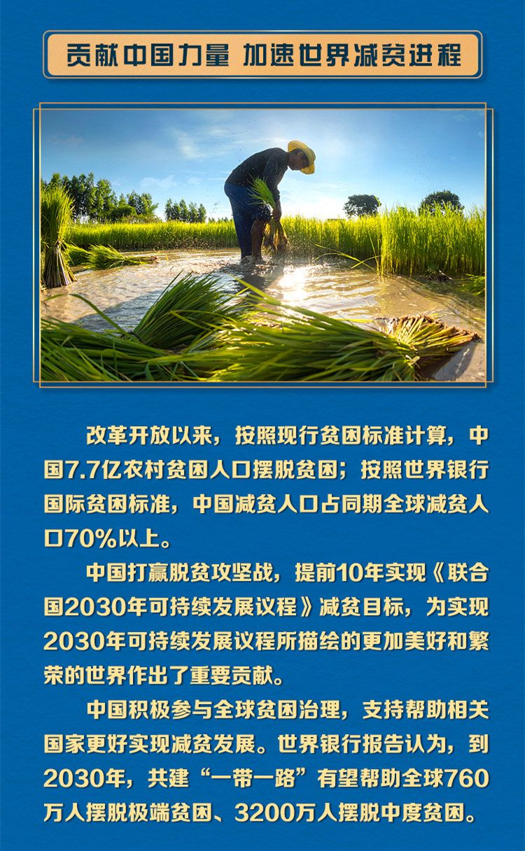 消除贫困,自古以来就是人类梦寐以求的理想,是各国人民追求幸福生活的基本权利。这些年来,习近平主席多次在重要活动中阐释中国理念、分享中国经验,推动全球减贫事业大踏步向前。中国在摆脱贫困方面取得的非凡成就为国际社会带来希望、提供激励,为推动构建人类命运共同体贡献了中国力量。