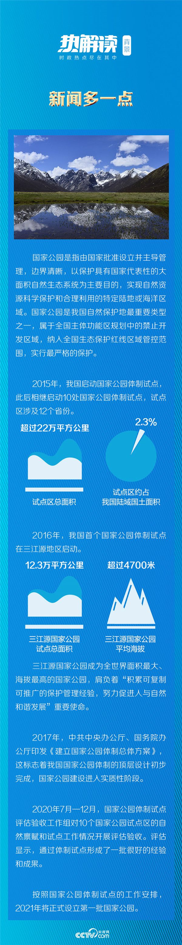 国家公园保护的是全国最精华、最珍贵、最核心的自然生态资源,是生物多样性最富集的地方。建立国家公园体制,是党中央站在实现中华民族永续发展的战略高度作出的重大决策,是生态文明和美丽中国建设具有全局性统领性和标志性的重大制度创新。