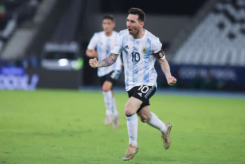 6月14日,阿根廷队球员梅西在进球后庆祝。新华社发(拉赫尔·帕特拉索摄)