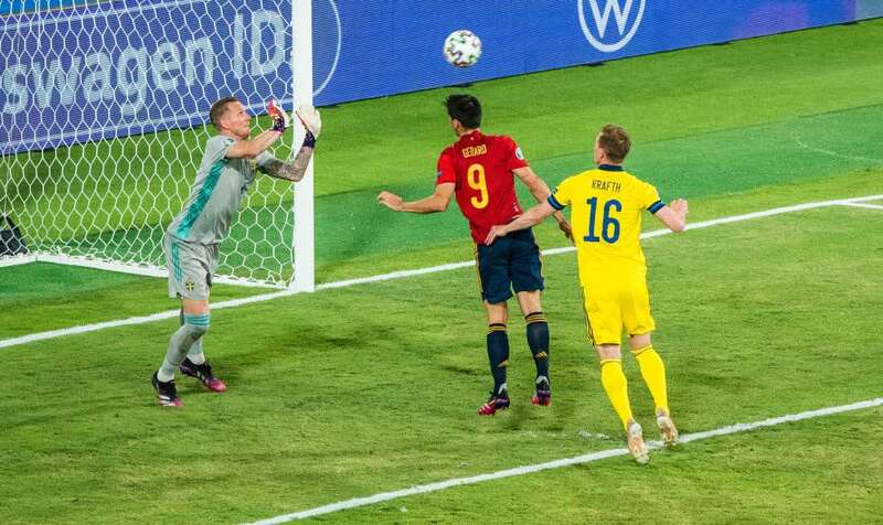 然而再度碰面,西班牙队面对对手的严防死守却没能找到破门的办法。上半场即将结束阶段,莫拉塔曾有一次绝佳的单刀球机会,但是却没能把握住,这也让这位尤文前锋下半场被换下时受到了全场的嘘声。瑞典门将奥尔森成为瑞典收获一场平局的最大功臣,全场比赛他多次做出精彩扑救,尤其是在比赛结束前,他还倒地扑出了莫雷诺近在咫尺的头球攻门,力保球门不失。