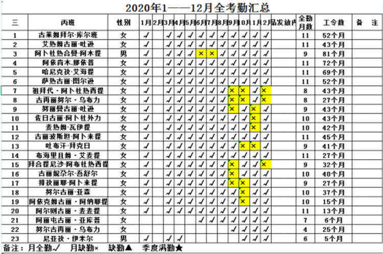 喀什地区一名纺织企业工人曾告诉杨青达,企业会对满一个月全勤的员工奖励面粉或者食用油,如果连续一个季度都全勤就能在工资基础上领到300元的全勤奖,如果是全年全勤的话,除了前面说的奖金,还能跟着公司组织的旅游团出去玩。也因此,在采棉花的两个半月,员工可以请假去采棉花,但很多员工认为全勤奖加起来也挺可观的,请假的人也就相对减少了。