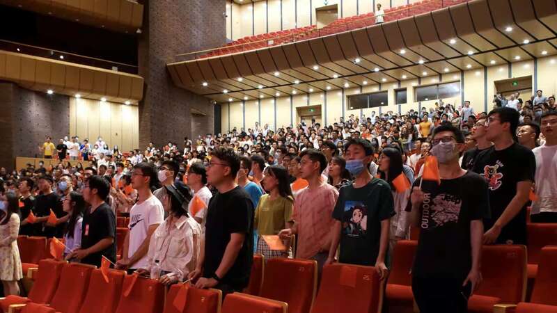 特别值得一提的是,音乐会上演出的绝大部分作品都是由天津大学艺术教育中心老中青三代教师原创并首演。振奋人心的混声合唱《飘扬吧,党旗》、《在党的周围》,情深意切的男声独唱《我悄悄地告诉祖国》、《初心不改》、《岁月》,以北洋大学—天津大学校史故事为蓝本创作的大型交响合唱《北洋颂》等慷慨激扬的红色音符点燃了求实会堂。音乐会尾声,当《没有共产党就没有新中国》的旋律响起,上千名师生观众全场起立,挥舞着手中的国旗,台上台下同声共唱尽情高歌,将音乐会气氛推向高潮。