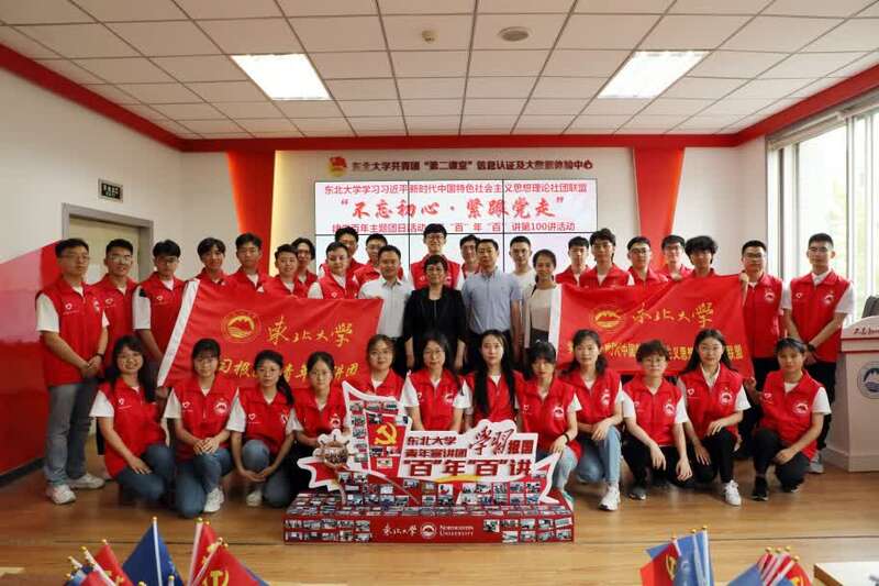 这是东北大学“学习报国”青年宣讲团百年百讲第100讲活动的现场。