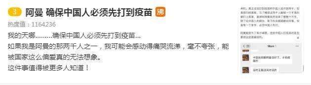 6月21日中午,“阿曼 确保中国人必须先打到疫苗”冲上微博热搜榜。