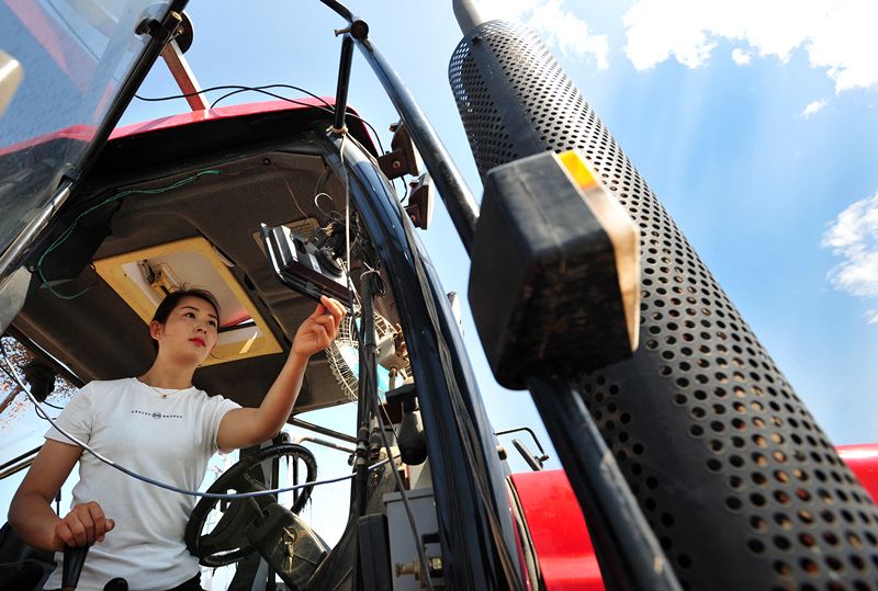 6月22日,张宸在调试无人驾驶精播与精准变量施肥一体机。