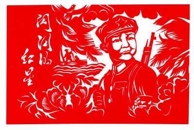 中国剪纸的国家级代表性传承人段建珺,专门为本版创作的剪纸作品《闪闪的红星》。这幅剪纸将抽象写意与具象写实相结合,画面中潘冬子的造型采用具象表达,运用剪影镂空的方式,简约、明快、洗练;画面中江流、竹排、岸树、鲜花、雄鹰等都是大写意的剪纸表达手法。光明日报记者 李韵摄/光明图片