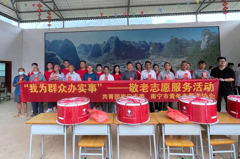 中国青年报客户端讯(中青报·中青网记者 谢洋)“建党百年送关爱 爱心圆梦微心愿”—— 2021年南宁市青年志愿者古棠村敬老爱幼志愿服务活动于6月23日在广西马山县古棠村举行。近120名爱心人士齐聚古棠村,为少年儿童圆一个微心愿,为老人唱一首生日歌,为村民带来一份收入。