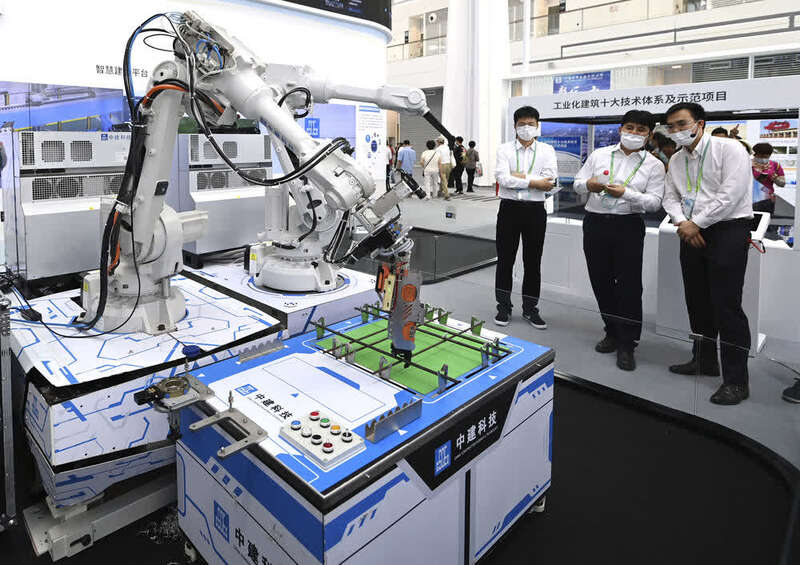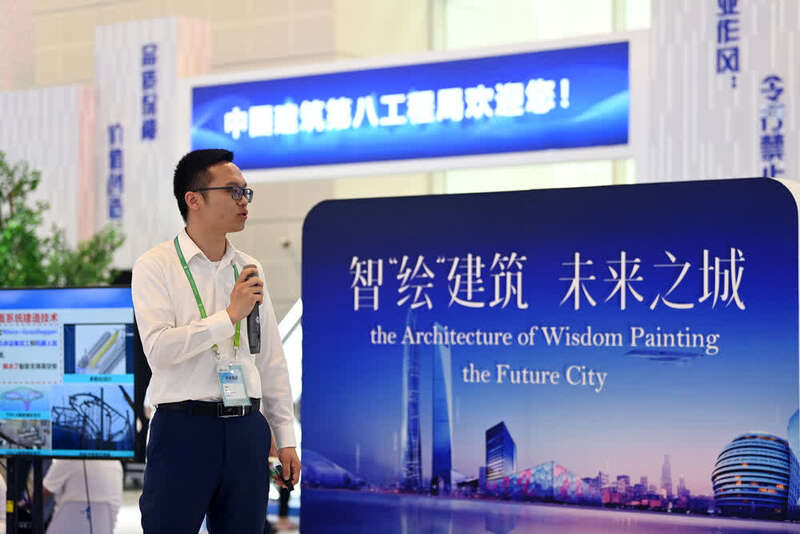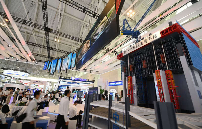 ↑这是在国家会展中心(天津)一期展馆内中建八局展示的新一代智能建造平台(6月24日摄)。