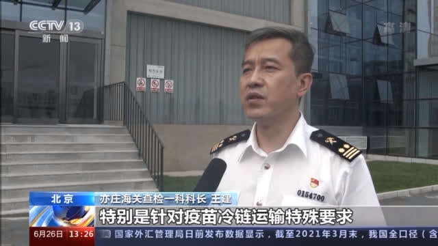 亦庄海关查检一科科长 王建:特别是针对疫苗冷链运输的特殊要求,安排关员进入生产厂区冷库监管,实现疫苗“零开拆”“零等待”,生产完成20分钟内即可完成海关查检,装运出厂。