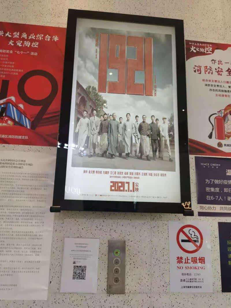 “100年了。”帮观众按好电梯键,影院的工作人员瞄了眼上方滚动播放的电影海报,轻轻感叹。画面里是一群昂首向前、心怀救国理想的年轻人,在他们头顶上方,硕大的红色数字写着“1921”。