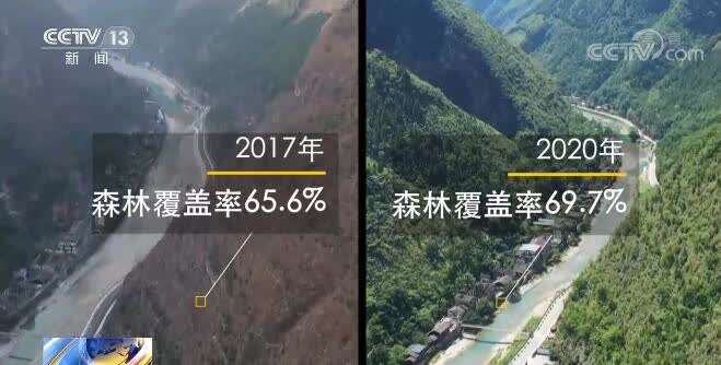 从2017年的65.6%到2020年的69.7%。这4.1%的数字变化离不开一个个背土、背树苗艰难爬上悬崖的种树人。
