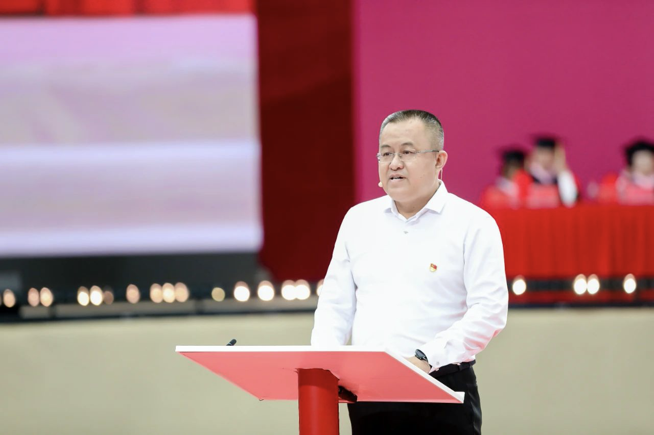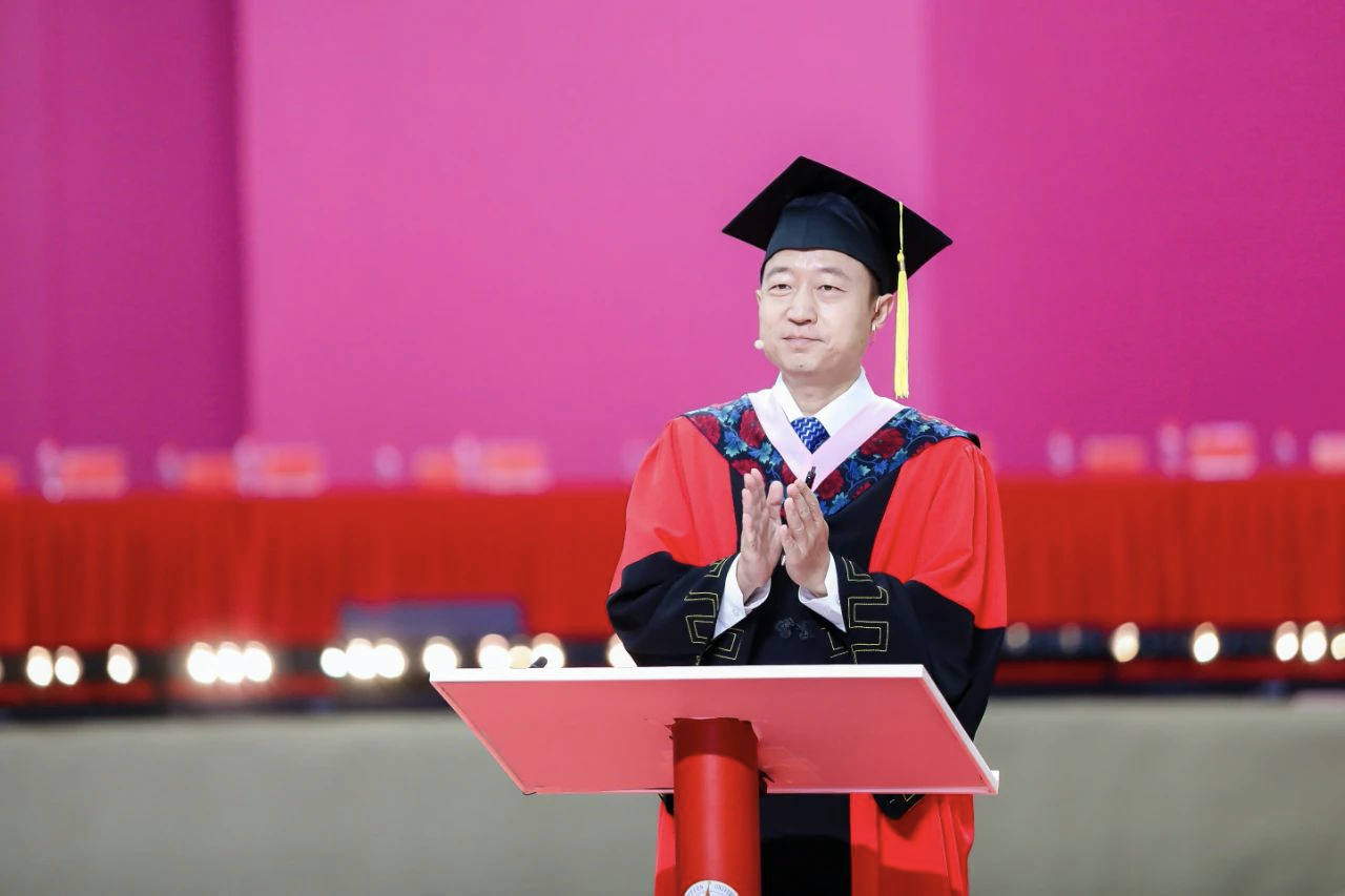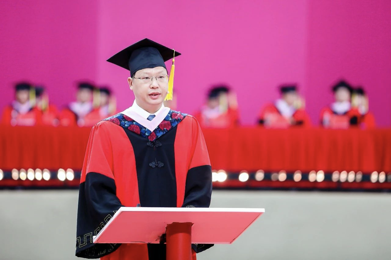 在热烈的掌声中,党委书记、校长廖祥忠发表了题为《同学们:人类社会正进入巨变期,你准备好了吗?》的讲话,向圆满完成学业取得学位的4502名毕业生表示热烈祝贺,向孜孜不倦的老师,向含辛茹苦的家长,向热切关心学生成长的社会各界致以敬意和感谢,告诫毕业生们将“小我融入大我”,在真刀真枪的实干中开启人生新的征程。