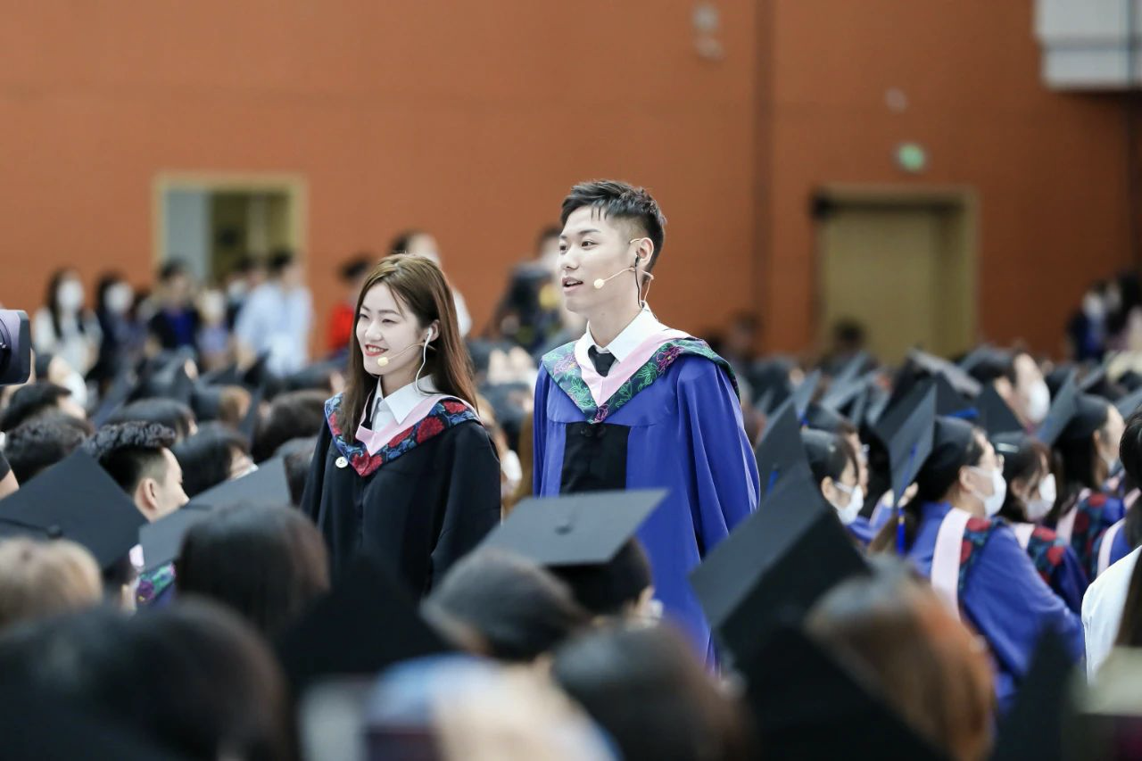 毕业典礼举办过程中,穿插家长讲述、校友祝福、文艺表演、现场互动,营造了浓烈的氛围。马元和、贾晓丰、程腾、石璐、AdeLaminconteh-Harris(塞拉利昂)等优秀校友的寄语,影视明星龚俊、青年配音演员时欣蕾等的场中连线和现场互动,为毕业生们带来惊喜不断。师生合作演绎的歌曲串烧,合唱校歌《校园里有一排年轻的白杨》等,不断将现场既温暖又令人感动的氛围推向高潮。