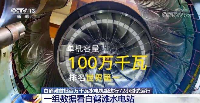 白鹤滩水电站总装机容量1600万千瓦,居世界第二,仅次于三峡工程。单机容量100万千瓦,位居世界第一。预计2022年7月可实现16台机组全部投产发电。届时一天的发电量就可满足50万人一年的生活用电。
