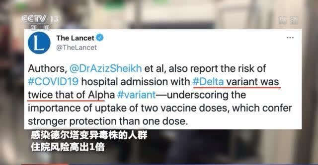 国际医学期刊《柳叶刀》的一项研究显示,感染“德尔塔”变异毒株的人群与感染“阿尔法”变异毒株的人群相比,住院风险高出1倍。